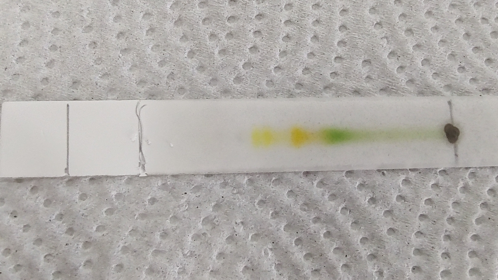 This laboratory was based on a Carolina kit with future plans to substitute local solvents based on what the kit provides. The lab launched on two videos and a presentation. In retrospect the presentation was confusing and not helpful. From all appearances, the xanthophyll travelled further than the carotene, as least by color. Even if that were not true - suppose that lighter yellow was carotene and the orange was xanthophyll, that would be confusing as the students were taught xanthophylls are yellow and cartonoids tend to be more orange-yellow.