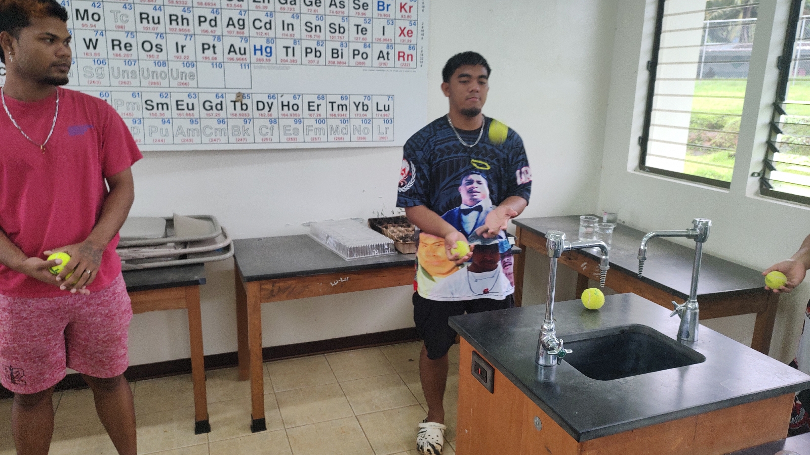 Jazzlyn multiplexing four balls. The women of Woleai appear to pass this skill down as only Woleaian women have displayed four ball multiplexing.