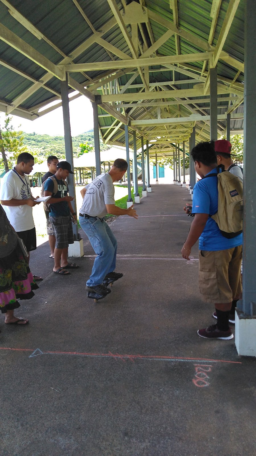 John Phillip Jr, Yostrick, Ardy Keoki, and Rufus timing a run. Myreen catching. Mike Selestine far left was recording data.